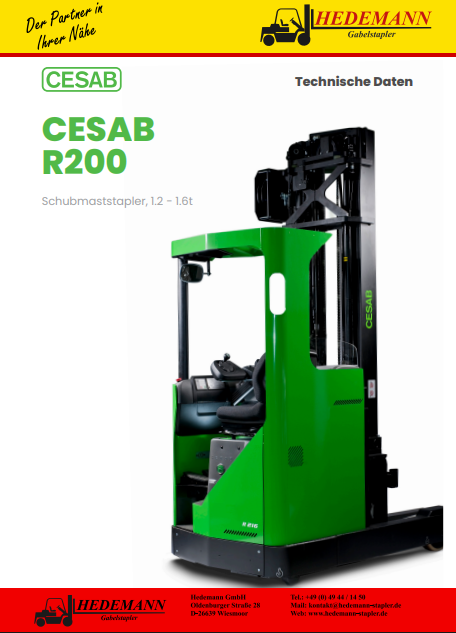 CESAB SCHUBMASTLADER SCHUBMASTLADER R100 SCHUBMASTLADER R200 SCHUBMASTLADER R300 Bildergalerie: Broschüren & Datenblätter: